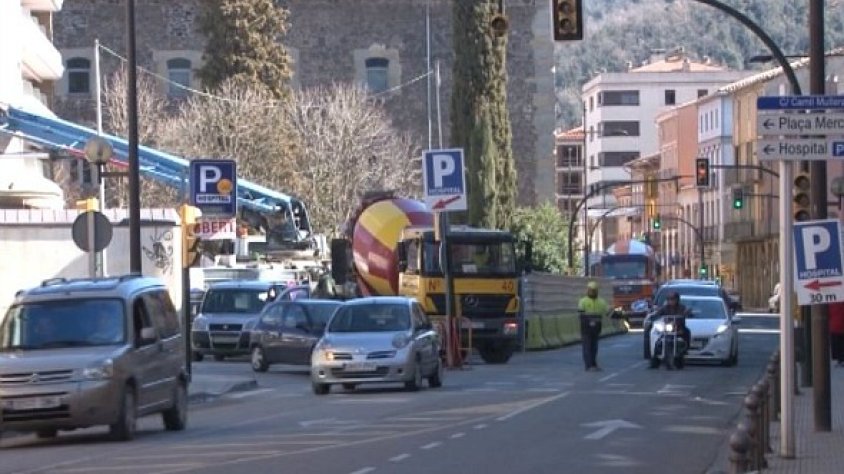 El trànsit interior d’Olot està vivint importants afectacions durant dijous i divendres. L’empresa constructora de la Plaça Mercat està realitzant treballs en el formigó de l’edifici, amb una maquinària de grans dimensions.