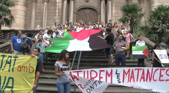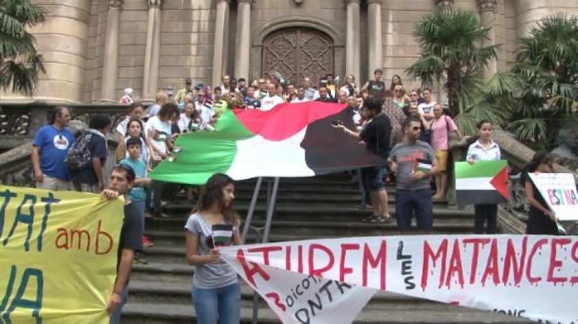 Ahir unes cent persones es van reunir al davant de l'església de Sant Esteve de la ciutat d'Olot per demostrar el seu suport cap a la situació que està vivint Palestina. En les últimes setmanes els incidents han tornat a la franja de Gaza i més de 300 palestins han mort per atacs terrestres israelians. Es tracta d'un conflicte que acumula ja molts episodis de terror i víctimes. Des d'Olot, i amb la presència d'alguns ciutadans palestins, es va mostrar el rebuig cap a aquest conflicte.