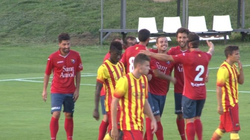 Tot i el caràcter experimental de les pretemporades, la Unió Esportiva Olot està demostrant que pot plantar cara amb solvència als equips de la categoria de plata. La setmana passada contra el Sabadell, i avui contra el Barça B. Els garrotxins fan ostentació d'una intel·ligència tàctica que els fa adaptatius al joc del rival. Avui, davant del que es preveia un joc de domini de la pilota del Barça B, els homes d'Arnau Sala han fet gala d'un joc a la contra molt eficaç ordit des de la defensa, un bloc compenetrat que resulta un mur infranquejable per als rivals. La resposta de l'Olot als errors ofensius del contrari s'ha fet perillosa amb els ràpids reflexos de la zona mitja i la mossegada dels davanters que, però, no han tingut la fortuna al costat a l'hora de culminar la jugada. El gol ha arribat al minut 37, fruït d'una jugada assajada des del córner. David López ha servit magistralment al segon pal i Jorge Rojas ha rematat portant la pilota al fons de la porteria rival, el primer gol del central des que és a l'Olot.