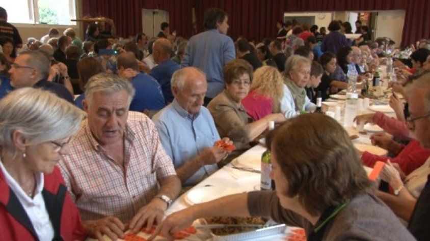Com és habitual, l’aplec reuneix uns 350 veïns disposats a passar una bona estona junts i gaudint d’un bon dinar, a base dels plats típics de les diades de la comarca, com l’amanida, l’arròs i la ‘llangonisseta’, nom que pren la botifarra a la Vall de Bianya.