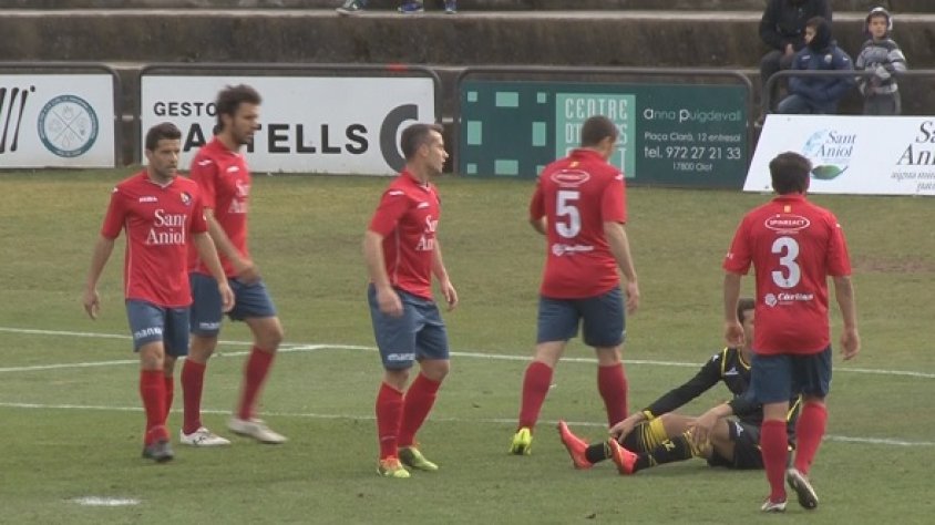 La Unió Esportiva Olot torna a remuntar un resultat advers (2-1) i enllaça per primera vegada aquesta temporada dues victòries consecutives en un partit marcat pel fort vent a l'estadi