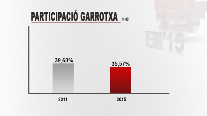 El primer avançament de participació a la Garrotxa, el de les 14h, és del 35,57%. Aquesta xifra és inferior a la del 2011, que va ser del 39,63%, en concret una mica més de quatre punts. Si ens fixem en els municipis on ja se sap qui serà l'alcalde perquè només s'ha presentat una sola llista ens adonarem que en tots els casos la participació és més baixa que fa quatre anys. A Argelaguer al migdia s'havia arribat al 37,09% mentre que fa quatre anys era del 52,40%, una diferència de 15 punts menys. Un altre exemple és la Vall de Bianya on ha votat el 36,26%, amb una diferència de 3,68 punts menys respecte al 2011.