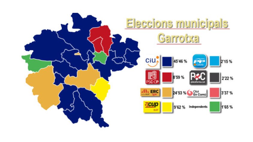 Convergència i Unió ha dominat de nou a La Garrotxa aquestes eleccions municipals. A més de la victòria a la capital, la federació nacionalista s'ha adjudicat municipis importants de la comarca com Besalú, Les Preses, Sant Feliu de Pallerols o Sant Joan les Fonts.