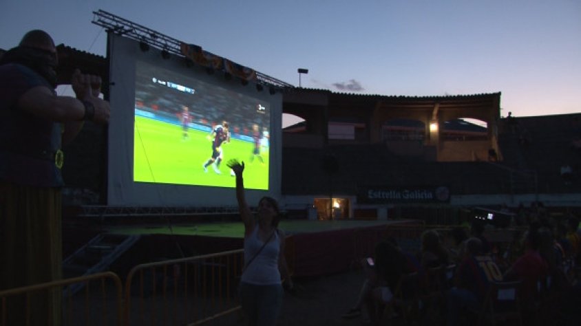 Però la penya almogàvers també va muntar una pantalla gegant a la plaça de braus com a substitutiu del firal. I la van emplenar amb un públic apassionat. Aquí tenen la crònica a peu de carrer de com es va viure aquest partit.