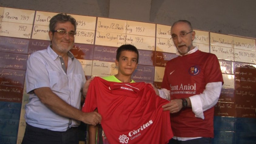 Però més enllà de les sensacions futbolístiques, que no deixen de ser bones, el partit ha servit per solidaritzar-se amb Càritas Garrotxa i reforçant el vincle que la UE Olot hi té. Aquest jove aficionat ha estat el guanyador del sorteig d'una samarreta del club, un sorteig amb la recaptació del qual aniran a Càritas. De la mateixa manera els diners recaptats de taquilla seran per a beneficència i els jugadors dels dos equips i els àrbitres amb tota probabilitat, aportaran el seu granet de sorra a la solidaritat, amb una recaptació que es coneixerà durant aquesta setmana.