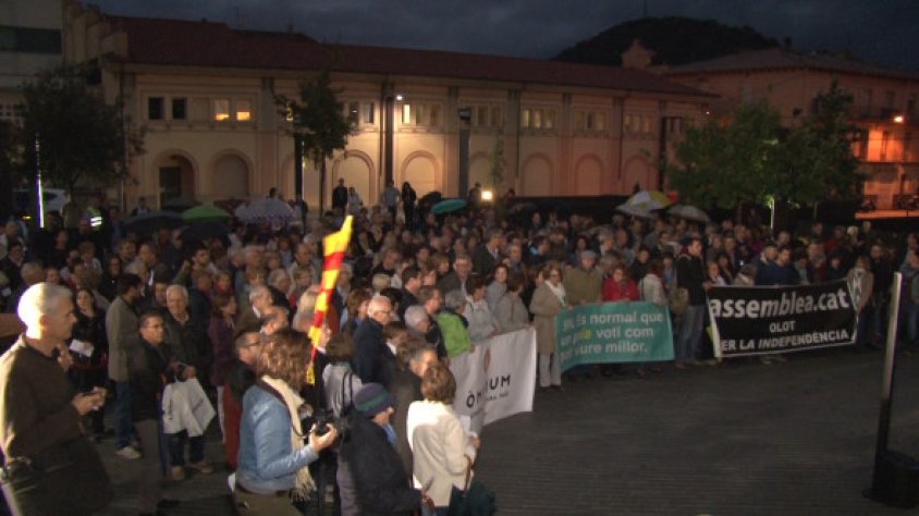 Més de mig miler de persones participen a la concentració davant l'Ajuntament d'Olot en suport a l'organització del 9-N