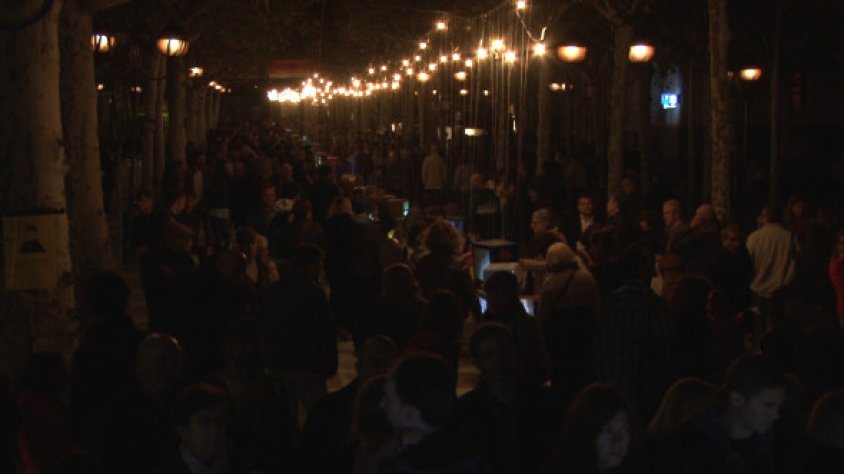 Lluèrnia ha triomfat. Milers de persones van passar el vespre al centre d'Olot per veure les variades instal·lacions que han canviat aquest dissabte a la nit la fesomia de la ciutat per una estona.