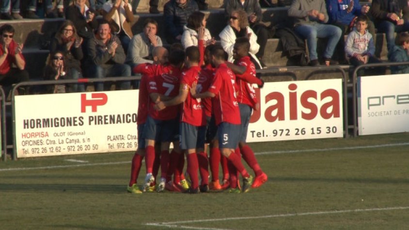 Quedaven pocs minuts pel final, i l'Olot ha trobat camí per fer mal als visitants. Amb el caliu del públic i amb molta fe, l'equip ha tirat endavant en un partit gris i on s'ha vist dominat pel rival, i al final la sort que li ha faltat sovint en l'inici de la temporada l'ha trobat Sergio Ortiz.