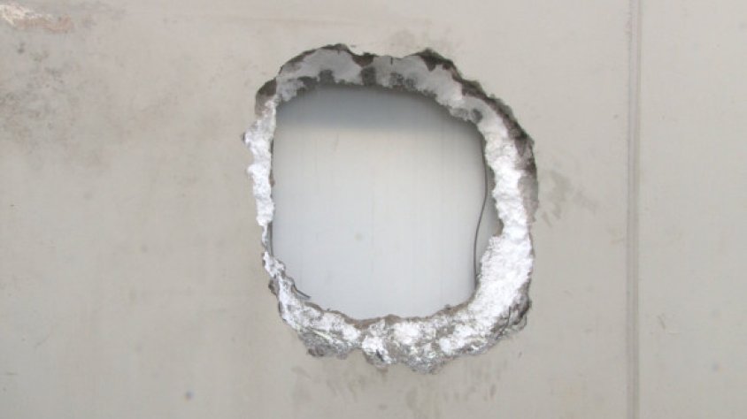 Aquest és el forat que van fer els lladres per entrar a Embotits Calet, al polígon de Begudà, per robar-ne material, la matinada de dimarts a dimecres. L'empresa es queixa que la seguretat aportada des del sector públic. Joan Espona, alcalde de Sant Joan les Fonts, al·lega que les càmeres de seguretat, l'absència de les quals es queixa l'empresa, hi són instal·lades des del gener d'aquest any, i que ha assumit els compromisos presos amb els empresaris del polígon en una reunió del juliol del 2014.