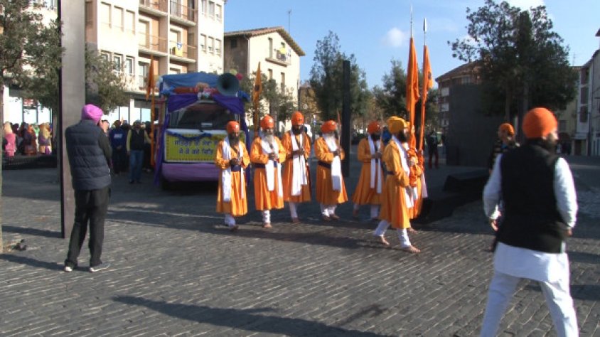 La comunitat sikh d'Olot fa una processó per celebrar la finalització de la lectura del llibre sagrat