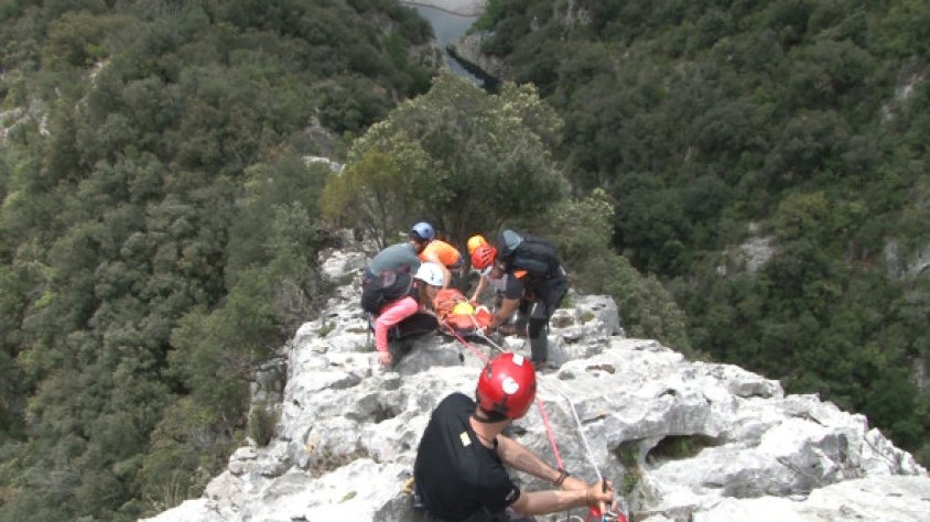 A la cresta del Castell Sespasa de Sadernes s’hi ha accidentat un menor de 12 anys. És un dels simulacres que aquests dies els alumnes del Curs de Medicina de Rescat d’Alta Muntanya han de resoldre en aquest indret de l’Alta Garrotxa. La víctima és real, en aquest cas, un nen de 12 anys. D’aquesta manera, tal com explica David Fajula, professor del curs, es busca que els casos siguin el més reals possibles fet que fa l’activitat molt més complexa per als alumnes, que no si es trobessin amb un ninot.