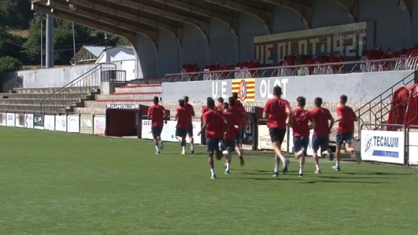 El club busca convèncer el migcampista Héctor Simón per quedar-se tot i el descens de categoria. El porter Gianni Cassaro té una oferta d'un filial de Segona B però els olotins tenen intenció de retenir-lo. La pretemporada va donar el tret de sortida ahir, i avui Ramon Maria Calderé ha dirigit la segona jornada d'entrenaments.