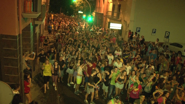 Una riuada de gent ocupa la part central del carrer mentre a les bandes hi ha el públic que s'ho mira. Tothom hi busca persones conegudes. Però aquesta no és una tasca fàcil perquè les aglomeracions són constants i la intensitat de la festa transforma a més d'un. És un moment de disbauxa total, on passar-ho bé és la premissa principal.