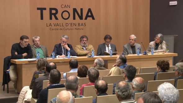 Escoltats per Albert Piñeira, vicepresident de la Diputació de Girona i diputat de Cultura, Xevi Colell, director de Can Trona, Joan Domènech, director de la col·lecció <<Quaderns de la Revista de Girona>>, Antoni Tremosa, director d'àrea de negoci de CaixaBank Garrotxa-Ripollès i Lluís Amat, alcalde de la Vall d'en Bas, els autors dels Quaderns de la Revista de Girona sobre la Vall d'en Bas, Maria Assumpció Arnau i Josep Sala, van presentar l'edició 183 de la col·lecció que traça un recorregut ampli i profund per la geografia, la cultura i la història de les comarques gironines a partir de les monografies locals i les guies.