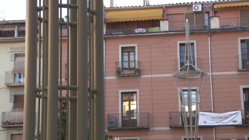Aquesta és la nova imatge de la Plaça Major d'Olot amb els nous fanals. De moment només hi han dues de les quatre torres instal·lades, però ja es pot intuir com quedaran els punts de llum relacionats amb l'entorn. L'Ajuntament va decidir fer aquest canvi per solucionar un problema endèmic de la Plaça: no hi havia cap estructura prevista per aguantar un cablejat o qualsevol tipus d'instal·lació externa temporal. Els dos fanals que falten per posar ja hi seran el proper dimecres, i es preveu que el 6 i 7 de novembre els punts de llum estiguin en funcionament.