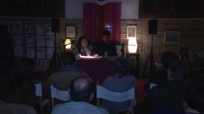 En primer lloc Xènia Dyakonova, escriptora i col·laboradora amb el diari Ara, va presentar 'Per l'inquili anterior', un recull de poemes publicat el 2015. Dyakonova també va aprofitar l'ocasió per recitar alguns poemes de l'obra que està a punt de treure del forn, es titularà 'Animals dispersos i una planta'.