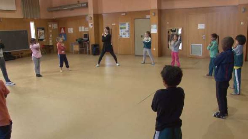La ballarina i coreògrafa resident a Faber israeliana Lior Lazarof ensenya als alumnes de l'escola Malagrida