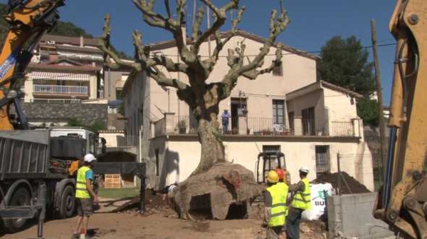 Les actuacions als arbres del mas Els Closells, de propietat municipal, van començar dimarts quan, a més de retirar el mur i la portalada de la finca, es van talar un avet i una picea que es consideraven de poc valor mediambiental. El plataner del mas, però, era una altra qüestió. Tècnics del Consorci de Medi Ambient calculen que podria acostar-se al segle de vida, i l'Ajuntament d'Olot ha decidit trasplantar-lo. El consistori admet que no és la millor època de l'any per efectuar aquesta acció, però el moment dels treballs ha primat. Esperen que el fet de trasplantar-lo al mateix indret li sigui propici.