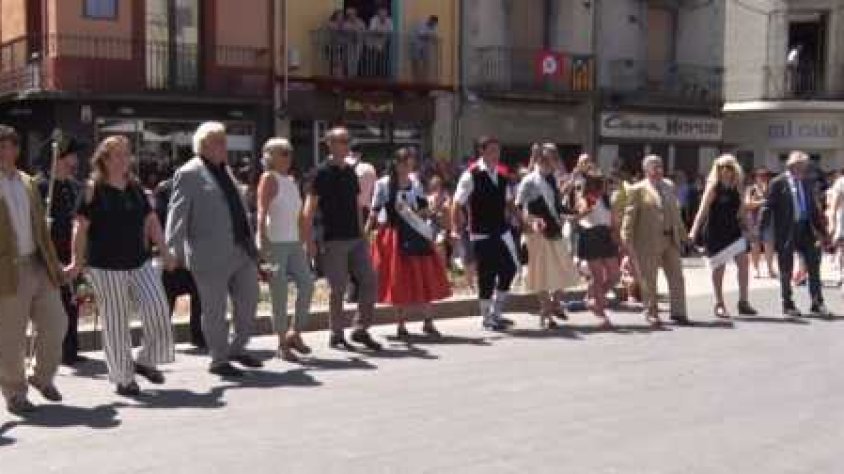 Una trentena de parelles participen a la Sardana de Corpus després de veure ballar els gegants d'Olot