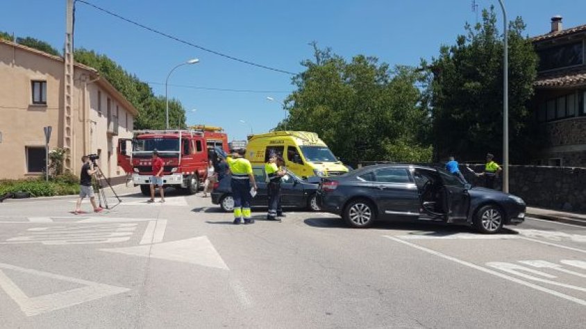 Un accident entre dos vehicles a Les Preses provoca dos ferits lleus i retencions importants
