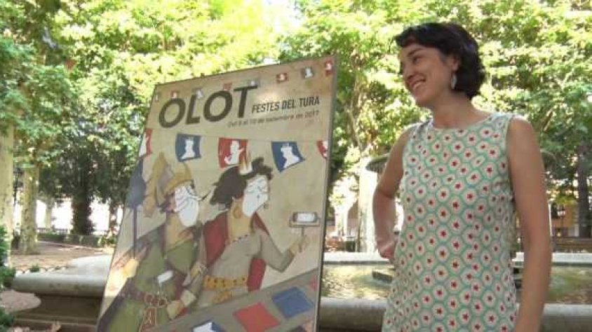Els detalls de les Festes del Tura es desgranen amb comptagotes. Ahir es va desvelar el cartell. Es van presentar 52 obres al concurs i la guanyadora i autora del cartell és la il·lustradora Roser Matas. Hi apareixen els gegants, que estampen amb pintura blanca i amb la seva pròpia imatge les banderes que ornamenten els carrers de la ciutat. El cartell també és un homenatge i record a l’Escola d’Art. La il·lustradora, de Riudarenes, va cursar un taller de gravat a l’Escola, quan va arribar a Olot, ara fa 5 anys.