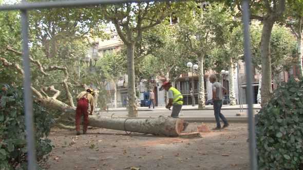 Les obres del nou Firal ja estan en marxa. Aquest matí s'han tallat els primers arbres del Firal petit i s'ha delimitat la zona amb tanques. Les actuacions més imminents són la retirada del mobiliari urbà i l'anivellament del terreny.