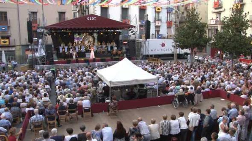 Dia de festa grossa en tots els sentits a Olot. La Plaça Major s'ha omplert diverses vegades durant la jornada d’aquest divendres, i una d’elles ha estat per escoltar el concert de festes, a càrrec de la Cobla-Orquestra Montgrins.