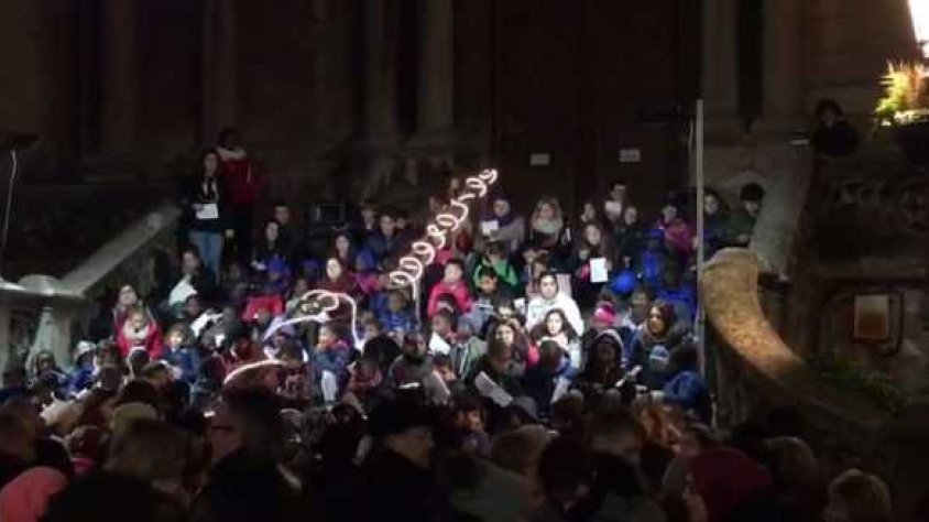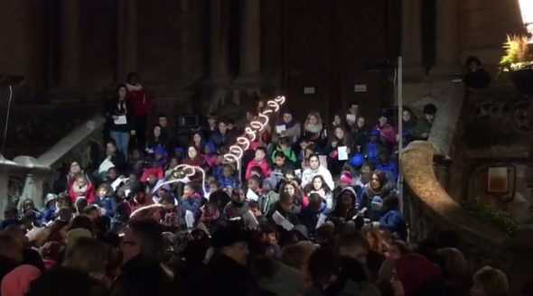 Un dels actes que va tenir lloc aquest cap de setmana va ser la cantada de Nadales dels Esplais de la Garrotxa, una entitat que formen més d'un centenar de joves. El punt de trobada, com cada any, van ser les escales de Sant Esteve.