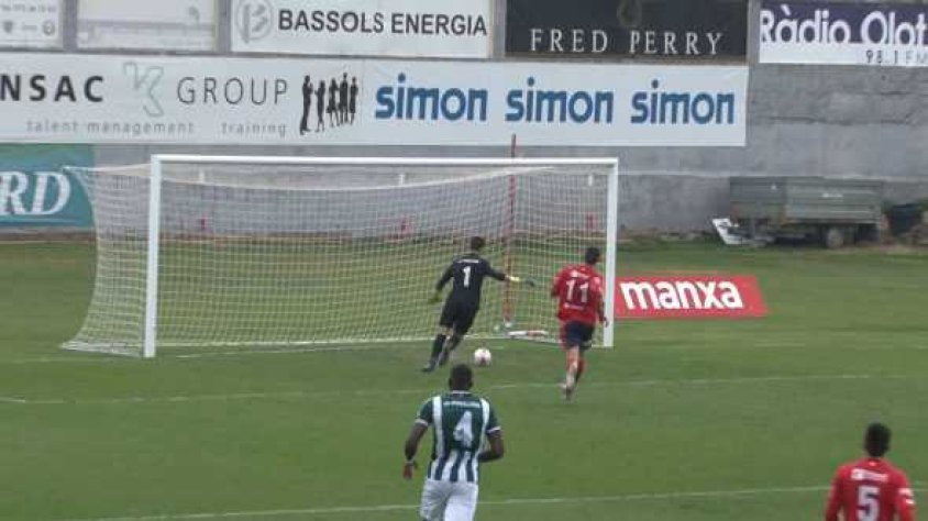 El derbi gironí entre l’Olot i el Peralada ha acabat sense gols. Els olotins han completat una gran primera part però la pilota no ha volgut entrar a la porteria defensada per Marc Vito. La segona part ha estat més igualada, però cap dels dos equips ha pogut anotar. Tot i el mal temps més de 1.200 espectadors van gaudir del partit a l’Estadi Municipal.