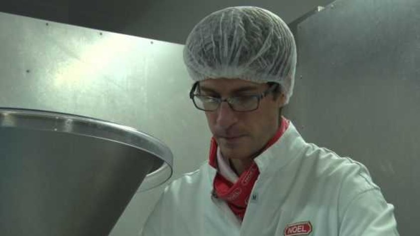 Ara estem a l’empresa Noel, de Begudà. En Jan és un jove que va cursar els dos anys de formació DUAL i ara treballa a l’empresa amb un contracte laboral. "Estava a Barcelona i no trobava feina i vaig trobar a Olot un curs de grau superior de la indústria agroalimentària i amb la formació Dual. Vaig venir a parlar amb Kreas i em van demanar si volia entrar a treballar a l'empresa Noel, vaig dir que sí i vaig començar a fer classes allà i la formació Dual a l'empresa", diu Jan Callejón.