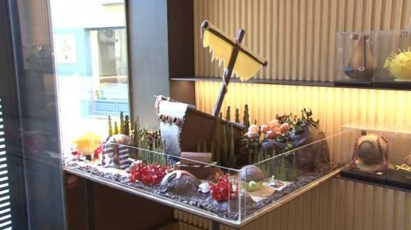La mona de la pastisseria Ferrer ja presideix l’aparador. Enguany, han apostat per una creació inspirada en el fons del mar. Destaca un vaixell pirata recobert de xocolata amb un pes d’uns 25 quilos. Un tresor, peixos pallasso, una tortuga, peixos globus i fins i tot una escafandre són alguns dels elements que formen aquesta dolça composició. La mona creada pel pastisser i xocolater olotí està inspirada en una carrossa que l’associació Flor de Fajol va lluir en una Batalla de les Flors.