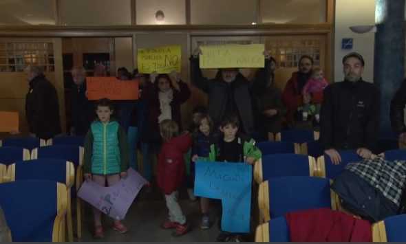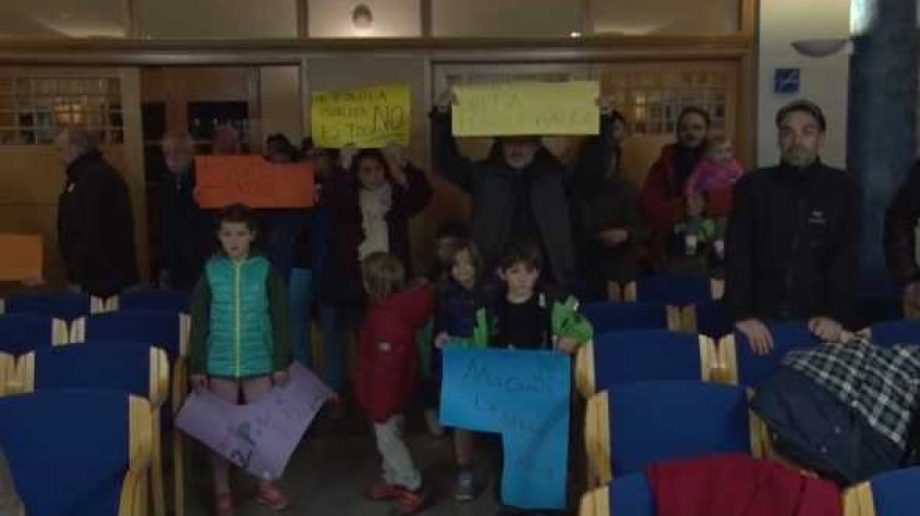 Un grup de pares protesta al ple d'Olot per la supressió d'una línia de P-3 a l'escola Malagrida el proper curs