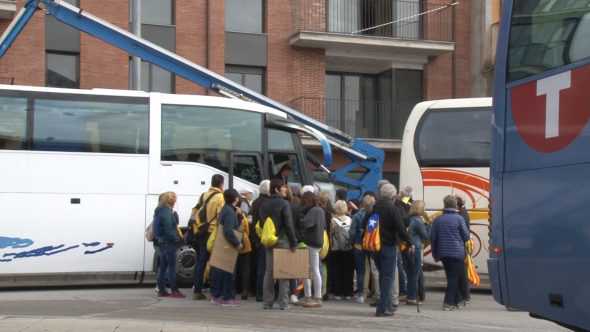 Més d'un miler de persones repartides en catorze autocars surten des d'Olot cap a la manifestació de Barcelona