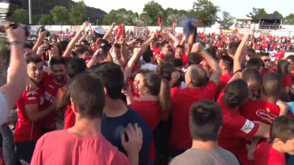 La Unió Esportiva Olot ha fet tot el que està a les seves mans per atreure el màxim nombre d’aficionats a l’Estadi. Per reviure imatges com aquestes, durant l’ascens a Segona B de la temporada passada, el club olotí, juntament amb els Almogàvers garrotxins i el grup de La Grada UE Olot, ha organitzat una sèrie d’activitats prèvies al partit per anar entrant en escalfor.