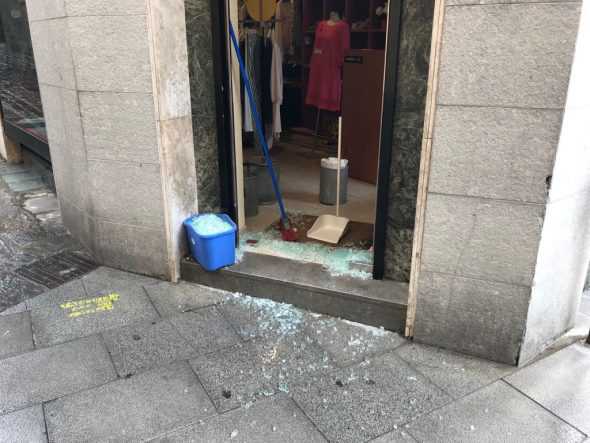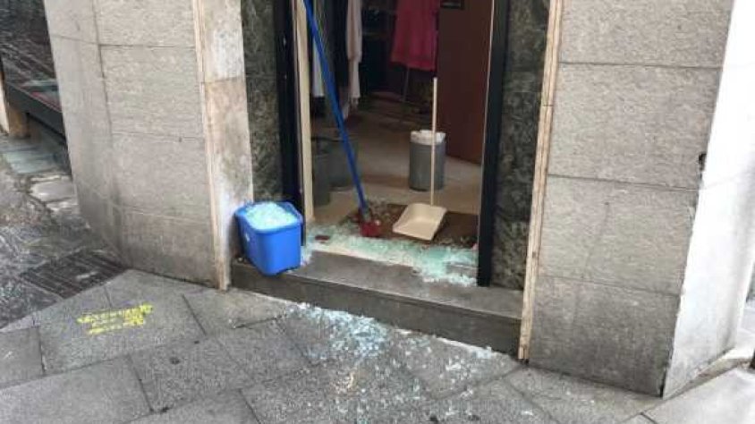 Trenquen la porta de vidre d'un establiment del nucli antic d'Olot