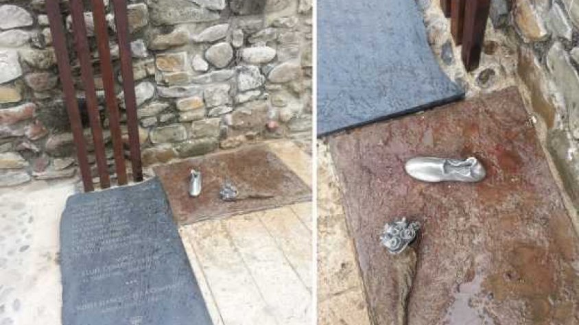 El Memorial dedicat a Lluís Companys situat a la Plaça Bisbe Miró de Besalú, apareixia mutilat en haver-li estat arrencada una de les espardenyes del poema visual, la part del monument que representa els darrers instants del president de Catalunya executat pel feixisme.