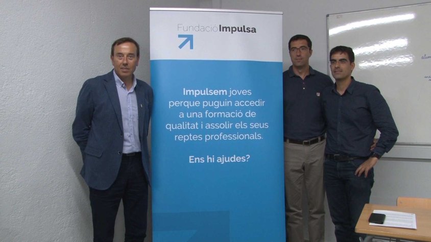 Carles Cuyàs, president de la Fundació Impulsa: “El programa Impulsa té inicialment una ajuda econòmica que potser entre 600 i 1500 euros l’any, se’ls hi dona aquesta ajuda a través d’una targeta de crèdit de la fundació, una targeta moneder. Se’ls hi facilita un ordinador portàtil que si acaben els estudis amb èxit és per ells i se’ls hi fa quatre formacions anuals”.