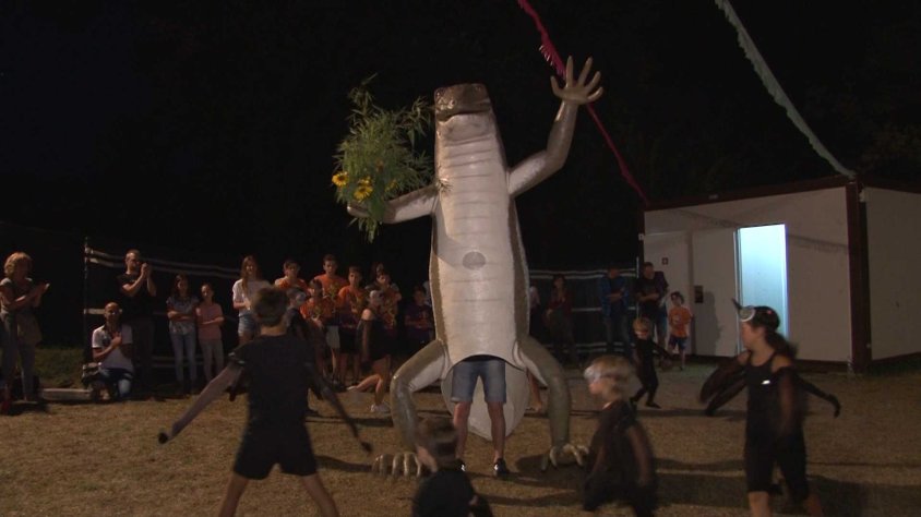 Joanetes estrena una nova figura de la faràndula, la sargantana 'Magdalena', durant la festa Major