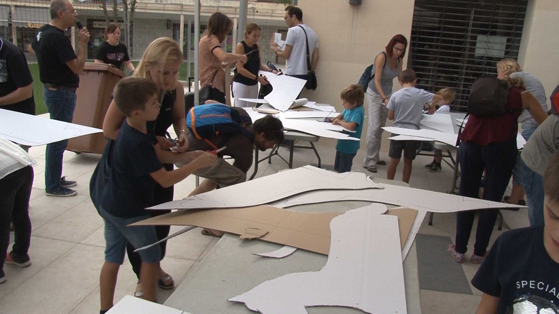 La cua, els ulls els adornaments del cabell i fins i tot la regna són algunes de les peces que partir de cartons, cartolines cintes i colors els petits, i no tant petits, van haver de retallar pintar i enganxar.