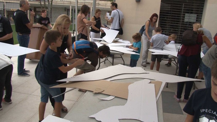 Tavi Algueró, president de l'Escola Municipal d'Expressió d'Olot: És com un monatble, han de retallar a partir de peces mig fetes, i anem donant instruccionsi els anem guiant els cinc monitors.