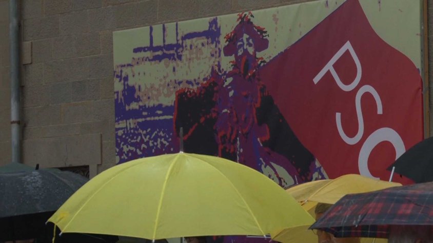 Josep Guix, portaveu del PSC a l'Ajuntament d'Olot: "Estem dolguts perquè el PSC és un col·lectiu que forma part d'aquesta ciutat, i que ha treballat moltíssim per millorar les condicions de vida de la gent de la comarca, i sobretot les classes humils i treballadores. Ens sap greu que surti un mural així a Olot i que estigui a la façana de l'Ajuntament".