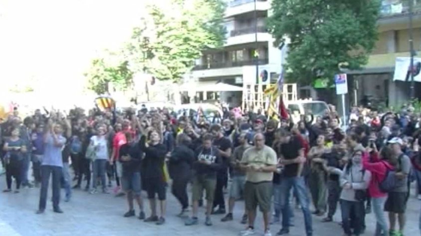 A les nou del matí del mateix dilluns els manifestants van desallotjar voluntàriament l’estació i es van dirigir a la seu de la Generalitat a Girona, on van despenjar la bandera espanyola.