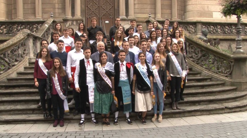 L'alcalde d'Olot, Josep Maria Corominas, i el regidor de Cultura, Josep Berga, són les autoritats que reben els Hereus i Pubilles de la Garrotxa just abans de fer la tradicional visita per la fira. La valoració que fan els nois i noies d'aquesta experiència és positiva i es mostren tots emocionats.