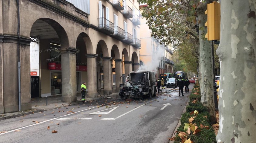 Una màquina de neteja s'incendia a Plaça Clarà d'Olot