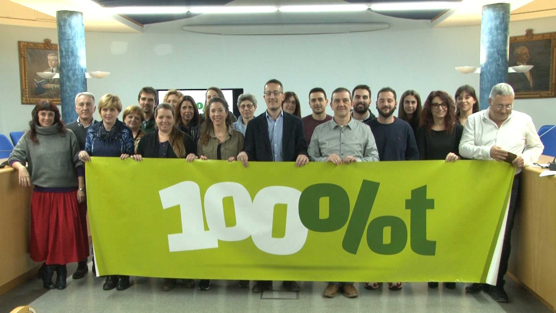 Aquests són els representants de la quinzena d'empreses que s'han afegit a la marca 100% Olot, creada des de l'Agència d'Innovació i Desenvolupament de la Garrotxa. La seva adhesió va quedar ratificada aquest dimecres amb la signatura dels convenis de col·laboració al saló de sessions de l'ajuntament de la ciutat.