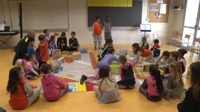 Dins les activitats dels Recursos Educatius de l’Institut Municipal d’Educació els nens i nenes de Primer de Primària de l’Escola El Morrot d’Olot han participat en un joc de seguretat a la via pública a càrrec de la Policia Municipal. En aquest cas el joc consisteix en una catifa que presenta diverses problemàtiques que es poden desenvolupar a la via pública com anar amb bici sense casc o travessar quan el semàfor està en vermell. Els alumnes han hagut d’exposar si creien que aquestes situacions són correctes o no per garantir la seva pròpia seguretat i la dels del seu voltant.