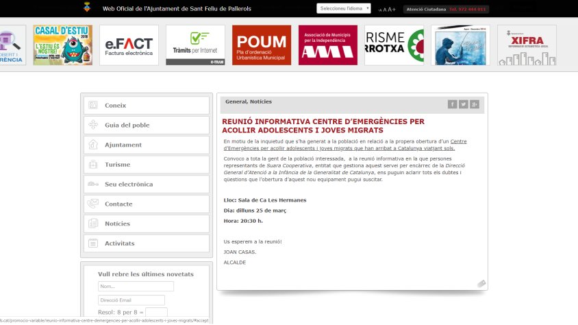 Sant Feliu de Pallerols convoca una reunió per informar de la propera obertura d'un centre de primera acollida