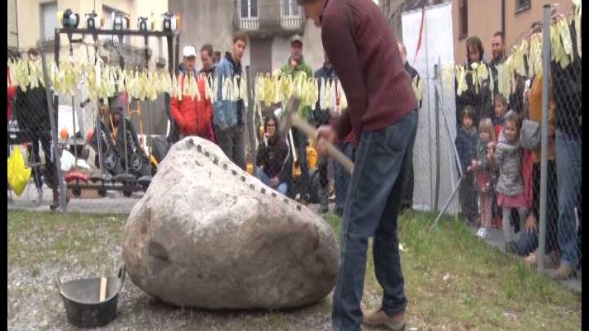 El moment més esperat, però, el va protagonitzar Juli Hernández, qui va mostrar a tot el públic assistent com partir una pedra gegant amb 'tascons', l’abc dels picapedrers a l’hora de, precisament, treballar la pedra per fer-ne objectes i materials.