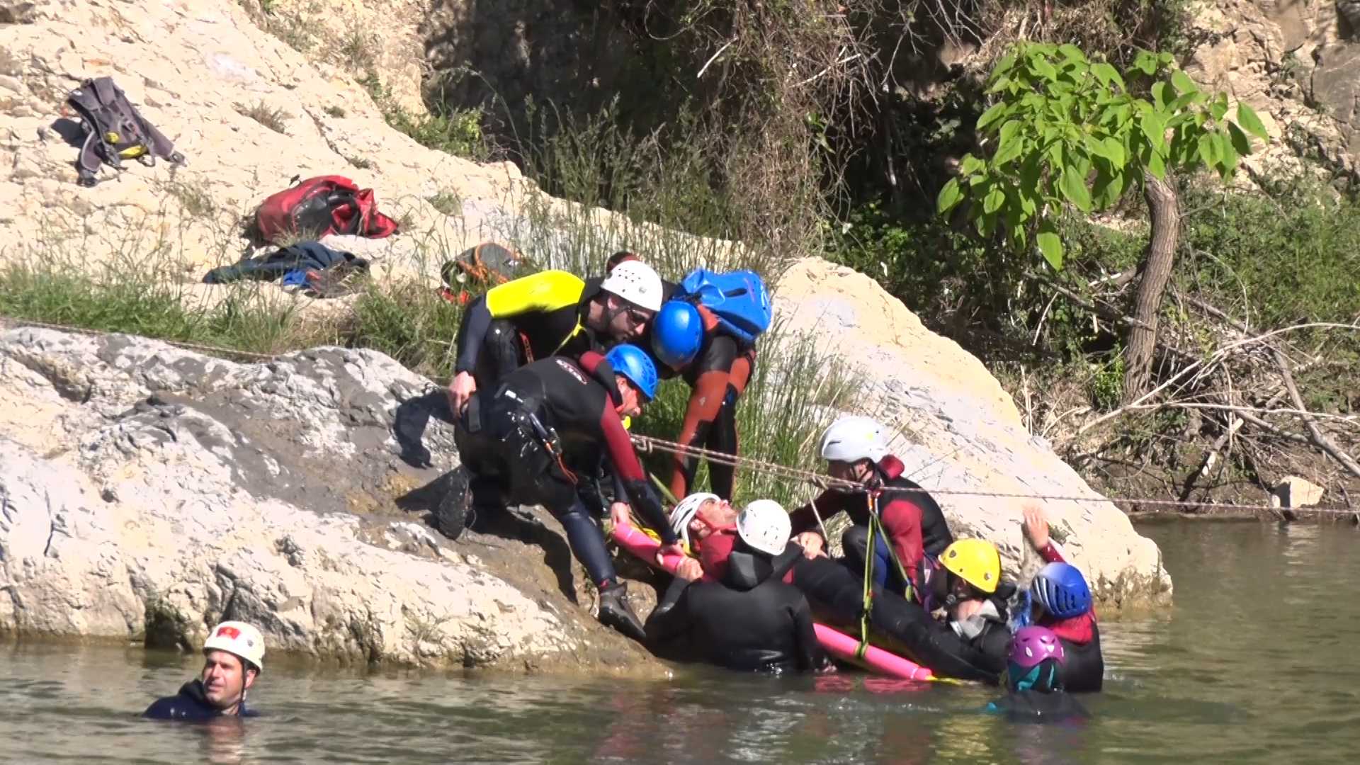 Joan Casadevall, responsable del curs de rescat: S’explica les formes professionals del rescat en el medi natural, no fem servir mitjans de fortuna sinó tot són mitjans naturals, farmacologia, monitorització del pacient... coses adaptades al rescat de muntanya i en aquest cas al rescat aquàtic.