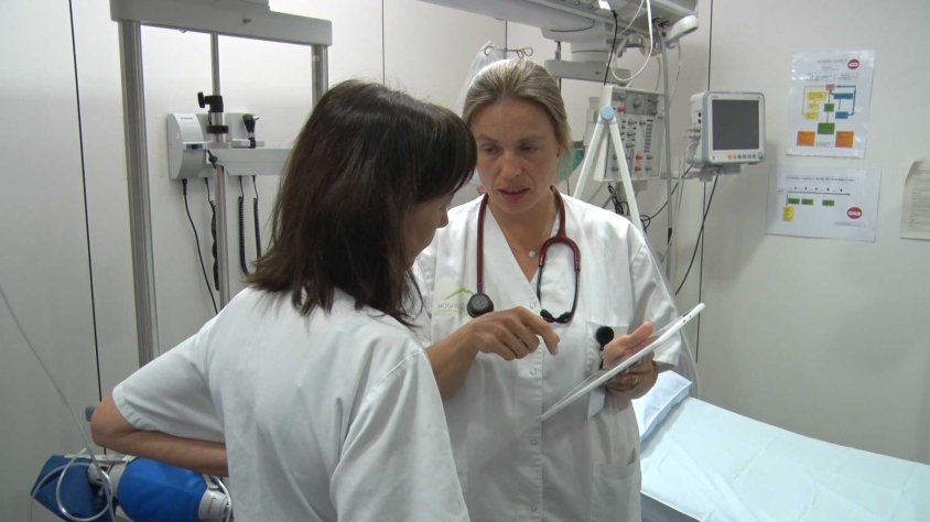 Maria Rybyeva, metgessa ajunta del Servei d’Urgències de l’Hospital d’Olot i Comarcal de la Garrotxa: Amb una tablet ens connectem amb els neuròlegs i fem com una videoconferència. Ells poden veure el malalt i van dirigint l'exploració que fem. N'hem fet un control específic perquè és molt important que quan s'arribi aquí ho fem molt ràpid.